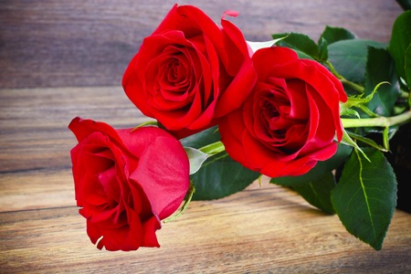 Red roses on wooden table love and romance concept