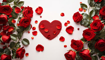 Valentine's day background with red roses and petals.