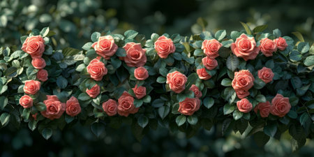 Vibrant Rose Bushes in Lush Greenery, Symbol of Love and Nature.