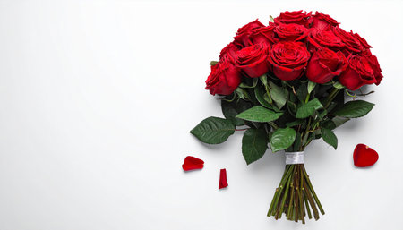 Bouquet of red roses on white background with copy space.