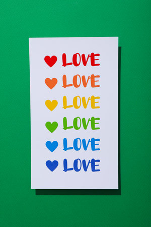 LGBT parade concept, envelope on green background.