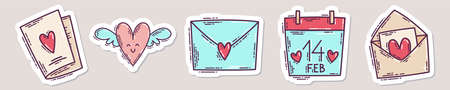 Doodle Valentine Day sticker set. Elements for greeting cards, romantic designs, social media, scrapbooking