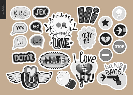 Set of contemporary girly love letter icon. A set of vector patches, logo and letter composition vector stickers kit.