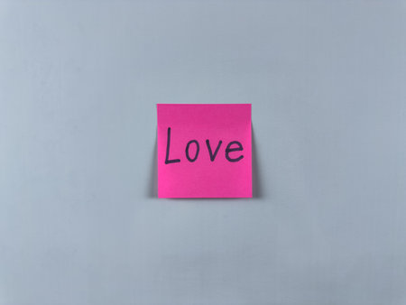 The word love on pink paper, a note