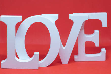 White sign love on a red background from each letter