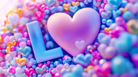 This vibrant and colorful image features a playful arrangement of hearts and the letter L, creating a joyful atmosphere perfect for celebrating love and affection.