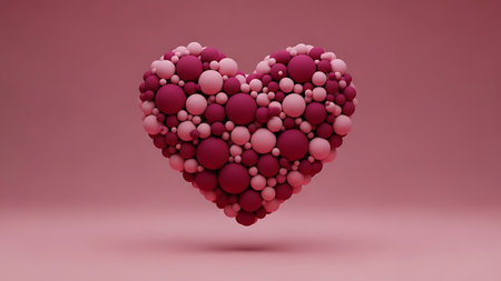 Abstract heart shape formed by pink and red spheres. Romantic artistic concept