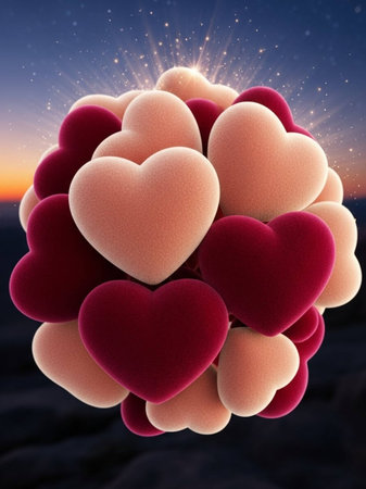 The background of Valentine's Day with a composition of bright balls in the form of hearts, creati.
