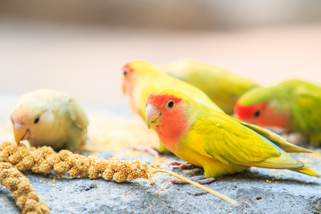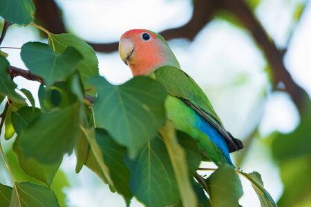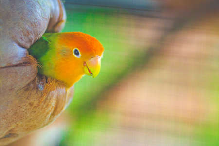 cute bird lovebirds or parrot are perched on a tree branch. This bird which is used as a symbol of true love has the scientific name Agapornis fischeri, bird background
