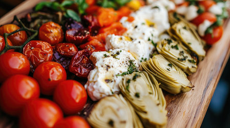 An inviting cicchetti platter featuring an array of colorful appetizers, perfect for gatherings. Ideal for sharing during social events or casual dining experiences.