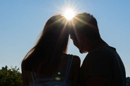 Young romantic couple close up in backlight