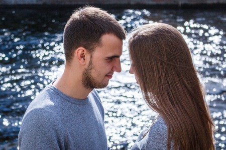 beautiful couple standing and looking one on one