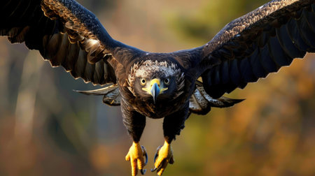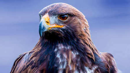 Majestic golden eagle is staring with an intense gaze, showcasing its sharp beak and beautiful feathers