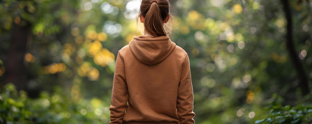 Woman wearing a brown hoodie, viewed from behind: Mockup. Concept Fashion, Mockup, Brown Hoodie, Women's Wear, Apparel
