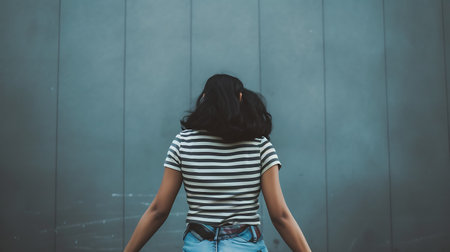 A person wearing a cozy blue jacket faces away from the viewer, their silhouette highlighted by a bright green background, creating a striking contrast that captures the essence of solitude.