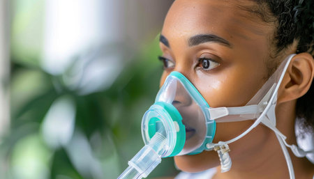 Woman doing medical procedure - respiratory inhalation in mask