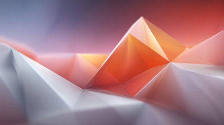 This vibrant abstract background features a stunning array of coral and peach tones, showcasing angular shapes and sharp facets that create a dynamic three-dimensional design.