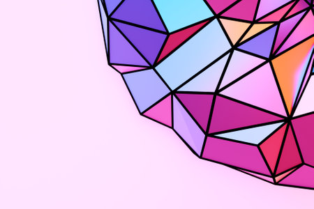3d rendering of abstract colorful geometric shapes in low poly style.