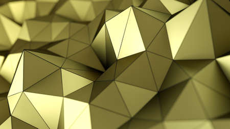 Low poly gold surface. Abstract polygonal shape. 3D rendering with DOF