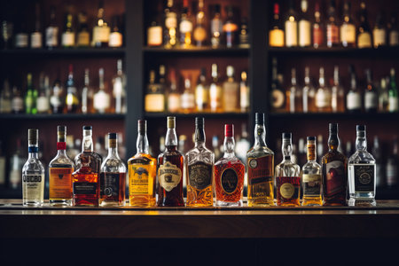 a stunning banner featuring an array of spirits and liquors elegantly displayed on a bar counter.