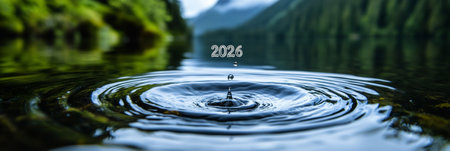 Serene Lake Reflections Tranquil Water Ripples with 2026 Text Overlay, Symbolizing the Future.