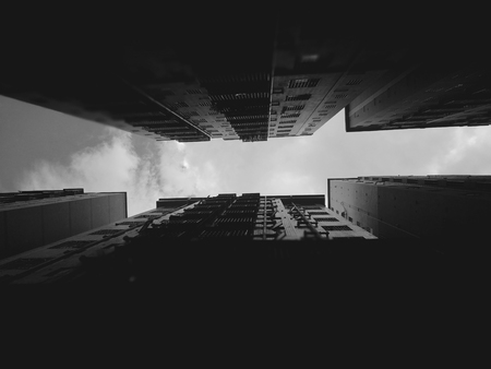 Low angle view of modern skyscrapers in Hongkong