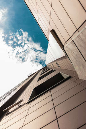 Modern office building with blue sky and clouds. architectural detail.