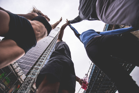 Group of urban runners running on the street in New york city, conceptual series about sport and fitness