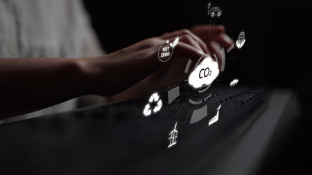 Business person implements initiatives to reduce CO2 emissions, aiming for net zero. Showcases commitment to sustainability by reducing CO2 for a greener planet. UUID