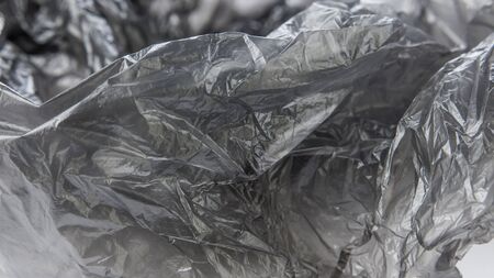 Harmful pollution. Full Frame Shot Of black Curled Plastic Bag, panorama, copy space
