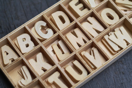 Closeup of a alphabet letters in a box