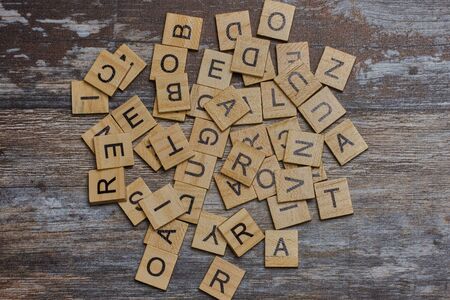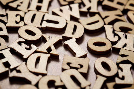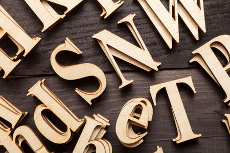 lots of capital wooden letters on a wooden background