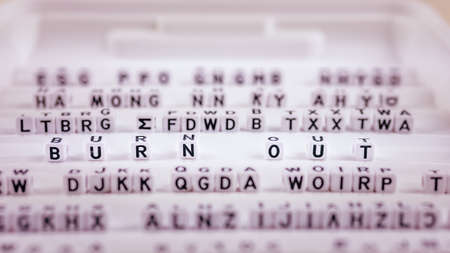 Burn out letters in focus between other blurred lettters