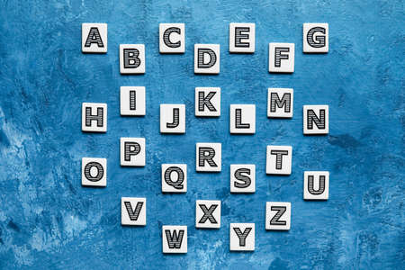 Different letters on blue background. Alphabet concept