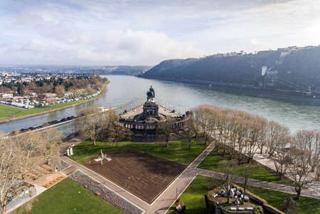 Koblenz City Germany historic monument German Corner where the rivers rhine and mosele flow together on a sunny day