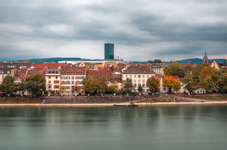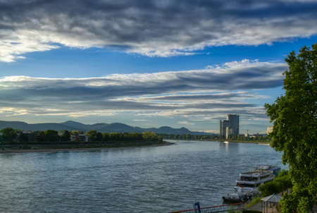 Distant view on a building exterior in Koblenz. Rhine and surrounding photographed during a sunny day