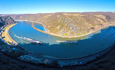 The view from above of the Loreley rocks the Rhine and the federal highway 42 near Sankt Goarhausen