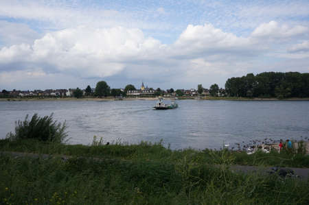 Bonn, North Rhine-Westphalia / Germany - August 13 2013: Car ferry at the river Rhine in Bonn between districts Graurheindorf and Mondorf