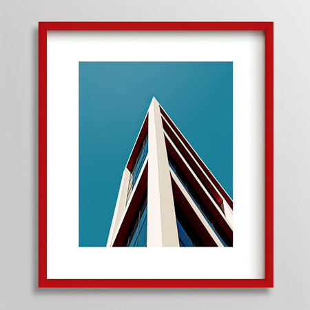 a red frame with a picture of a tall building