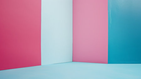 Modern minimalist architecture with colorful geometric shapes and blue sky background, artistic design concept