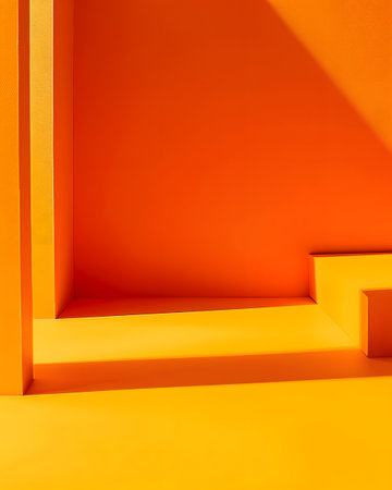 A vibrant orange setting with geometric shapes and shadows, creating a modern aesthetic.