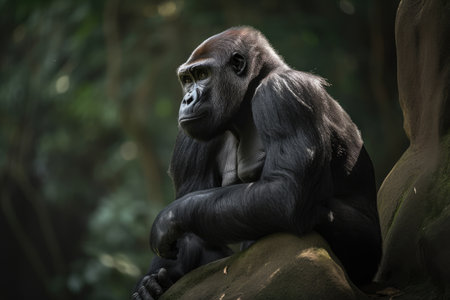 gorilla, sitting on rock and peering into the distance, created with generative ai