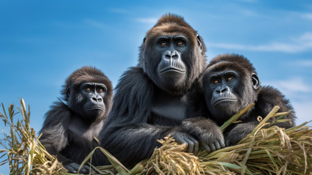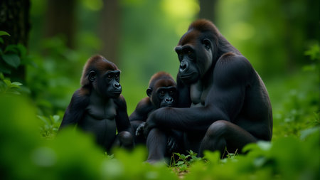 Noble silverback gorilla, the leader of its close-knit family, displaying strength and intelligence