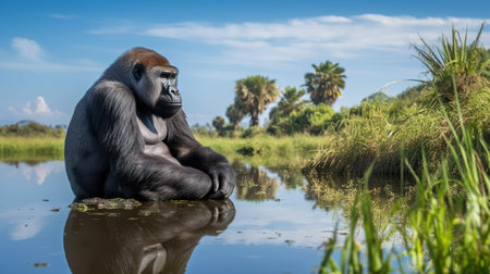 gorilla in peaceful setting, surrounded by greenery and natural beauty, created with generative ai