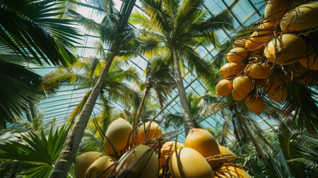 Tropical Palm Trees With Hanging Fruits in a Glasshouse Setting