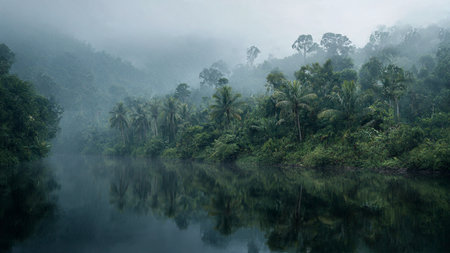 Exploring the lush deep jungles of Southeast Asia in August with vibrant flora and serene water pathways