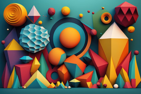 This stock illustration features a vibrant and dynamic backdrop composed of abstract geometric shapes rendered in a cartoon style.