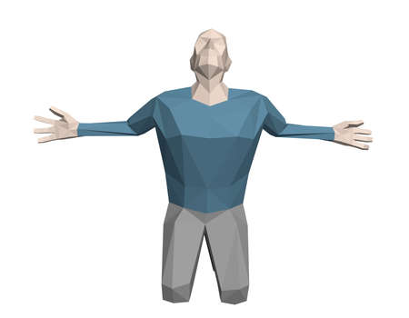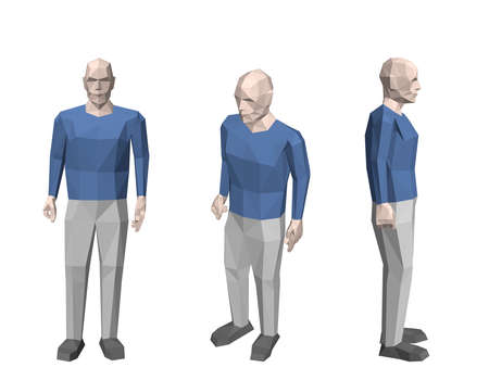 Standing low poly man. Isolated on white background. 3d vector illustration. Different viewes.