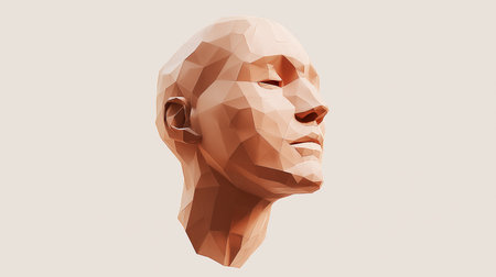 Creates a polygonal digital human face. Increase polygons and quality. 3d illustration