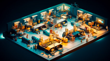 Model of room with lot of furniture and lot of lights. Generative AI.